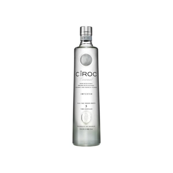 Ciroc Coconut de 70 cl es una de las variedades más icónicas de la línea de vodkas infusionados de Ciroc, elaborada con las uvas más selectas de Francia. Destilado varias veces en la histórica Distillerie de Chevanceaux, al sur de Francia, este vodka se distingue por su calidad premium y su excepcional proceso de creación.