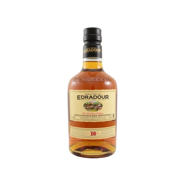 Edradour 10 Años es un whisky escocés single malt procedente de una de las destilerías más pequeñas y pintorescas de Escocia, ubicada en las Highlands. Este whisky artesanal se caracteriza por su estilo tradicional y su producción limitada, lo que lo convierte en una joya para los amantes del single malt.