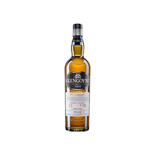 Glengoyne 15 Años es un single malt escocés de las Highlands, reconocido por su carácter elegante y su proceso de elaboración sin uso de turba, lo que acentúa la pureza de sus sabores.
