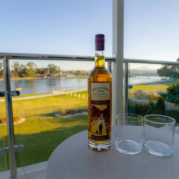Hellyers Road Twin Oak es un whisky australiano single malt originario de Tasmania, conocido por su carácter audaz y su doble maduración en roble americano y roble francés, lo que le aporta una profundidad notable y un perfil de sabor complejo.