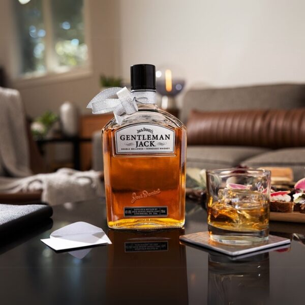 Jack Daniel’s Gentleman Jack es un whiskey suave y refinado que destaca por su proceso de doble filtrado con carbón de arce sacarino, lo que le otorga una textura sedosa y un carácter más pulido que otros whiskies de la marca.