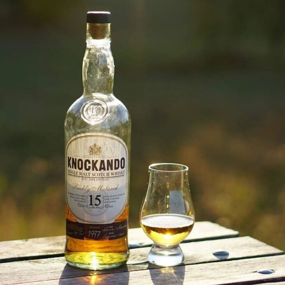 Knockando 15 años «Rich Matured» es un whisky escocés de malta que destaca por su riqueza y profundidad, fruto de una cuidadosa maduración en una combinación de barricas de jerez y roble americano.