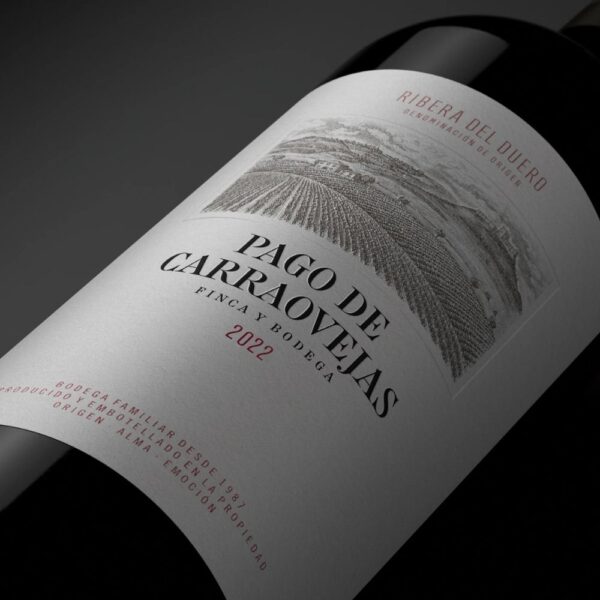 Pago de Carraovejas 2022 es la interpretación más honesta del valle que le da nombre, un vino que refleja la diversidad de suelos y orientaciones de las laderas de la finca. Elaborado con un 93% de Tinto Fino, 4% de Cabernet Sauvignon y 3% de Merlot, procedentes de viñedos cultivados en suelos calizos con arcillas rojas y margas blancas, a una altitud de 850 metros.
