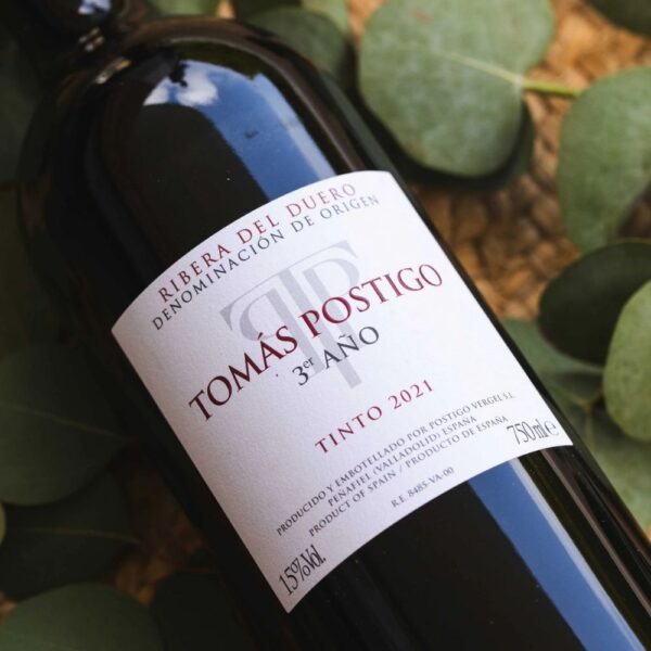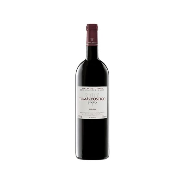 Tomás Postigo 3er Año 2022 es una de las etiquetas más destacadas de la Ribera del Duero, fruto del saber hacer del veterano enólogo Tomás Postigo. Este vino refleja la armonía entre tradición e innovación, con una crianza de 12 meses en barricas de roble francés y un ensamblaje de 56 vinos distintos provenientes de parcelas seleccionadas.