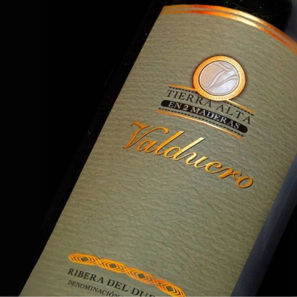 Valduero Dos Maderas Tierra Alta Crianza 2019 es un vino con carácter y profundidad, procedente de viñedos situados a más de 840 metros de altitud en la Ribera del Duero. Su nombre hace referencia a las dos maderas distintas utilizadas durante su crianza, aportando complejidad y equilibrio al conjunto.